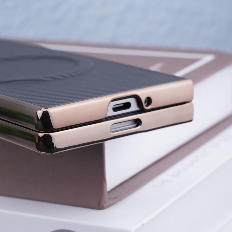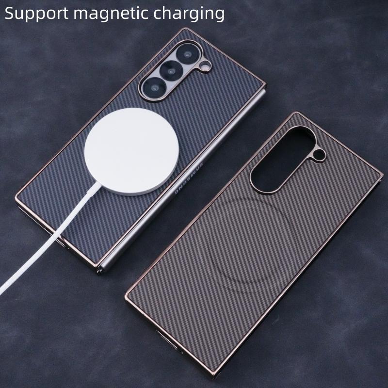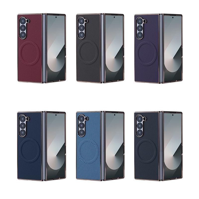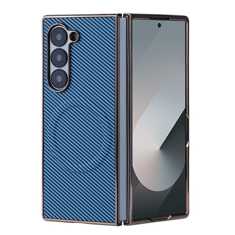 For Samsung Galaxy Z Fold6 Plating Frame MagSafe Carbon Fiber Fold Phone Case(Blue)