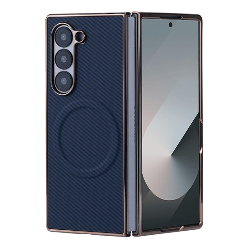 For Samsung Galaxy Z Fold6 Plating Frame MagSafe Carbon Fiber Fold Phone Case(Navy Blue)