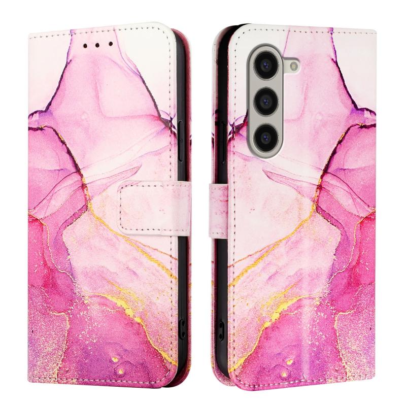 For Samsung Galaxy Z Fold6 PT003 Marble Pattern Flip Leather Phone Case(Pink Purple Gold)