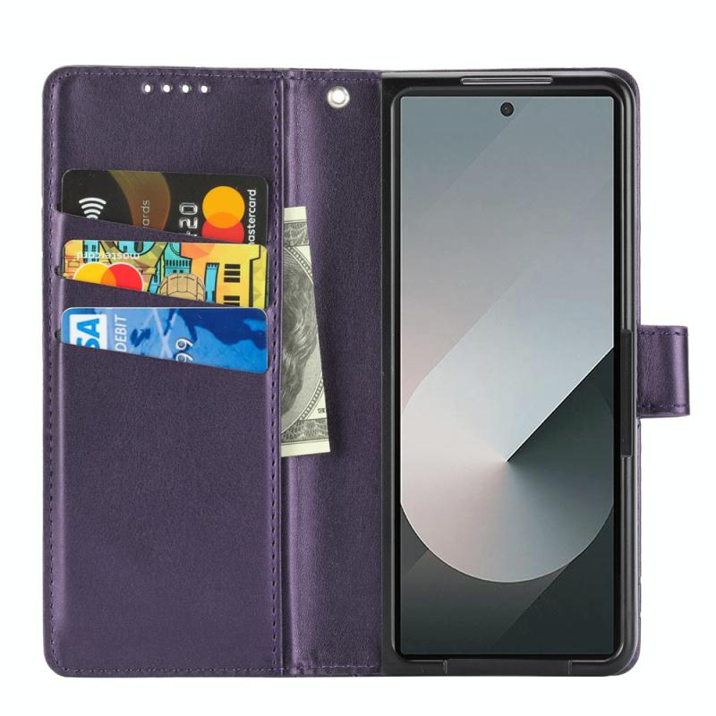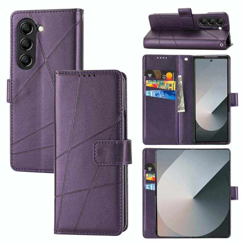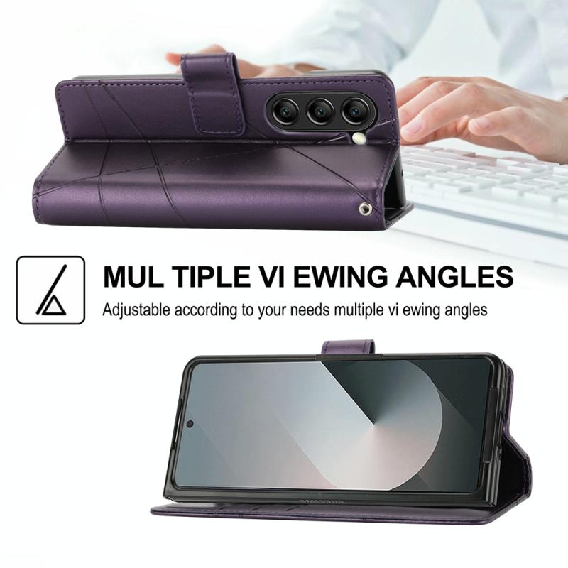 For Samsung Galaxy Z Fold6 PU Genuine Leather Texture Embossed Line Phone Case(Purple)