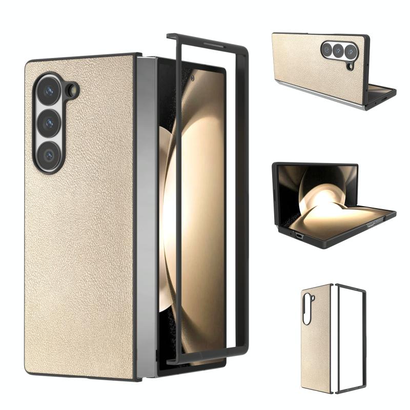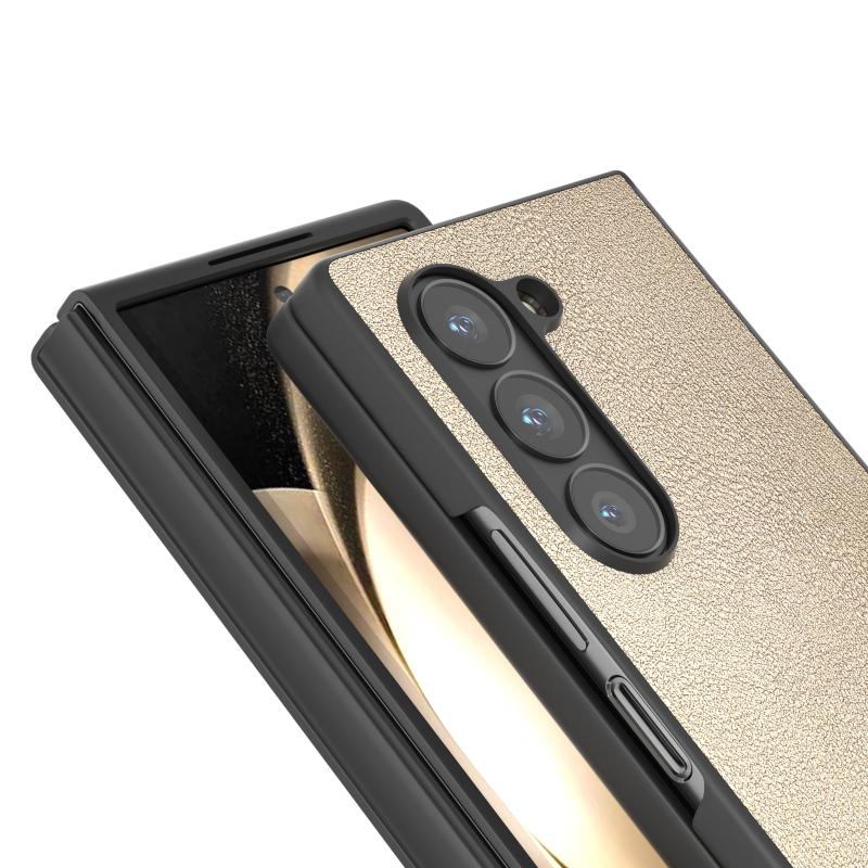 For Samsung Galaxy Z Fold6 PU Leather Black Frame Full Coverage Phone Case(Gold)