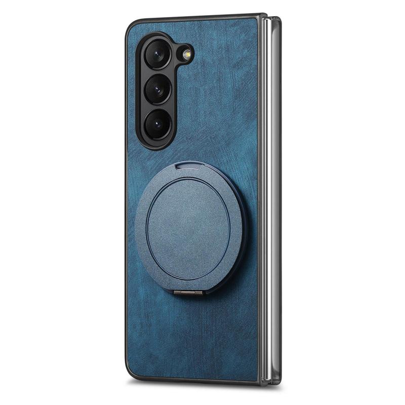 For Samsung Galaxy Z Fold6 Retro Leather Rotation Round Holder Phone Case(Blue)