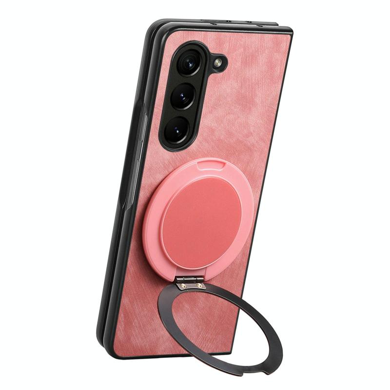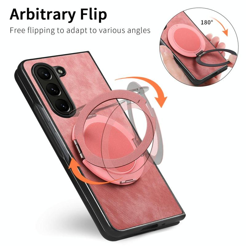 For Samsung Galaxy Z Fold6 Retro Leather Rotation Round Holder Phone Case(Pink)