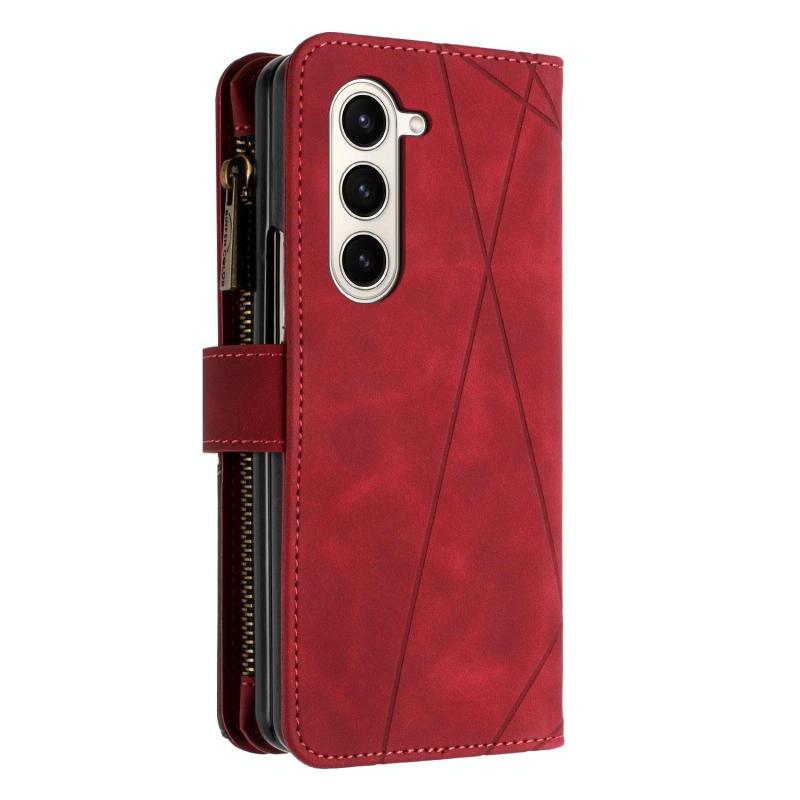 For Samsung Galaxy Z Fold6 Rhombus Texture Zipper Wallet Leather Phone Case(Red)