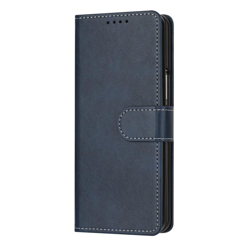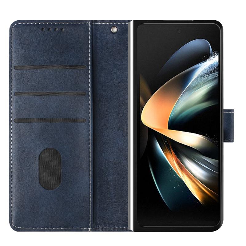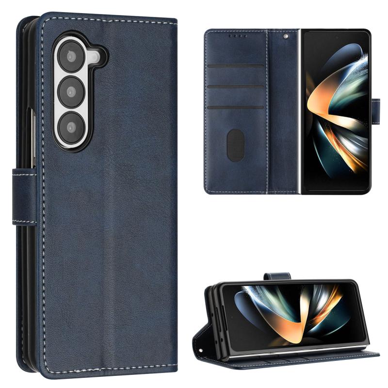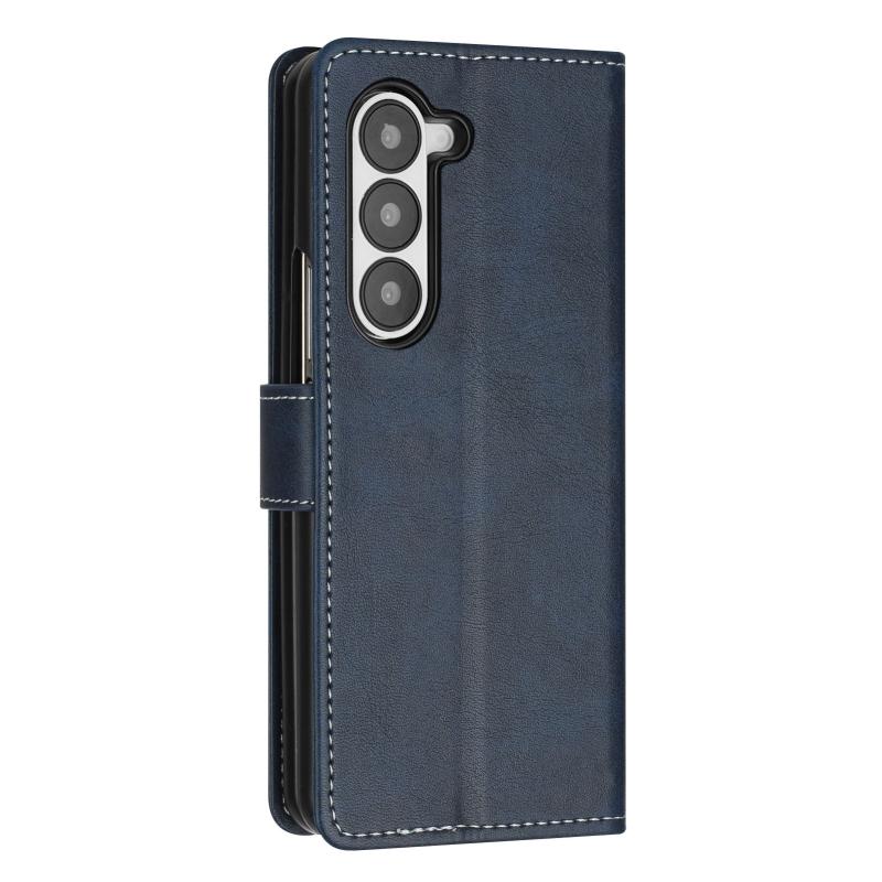 For Samsung Galaxy Z Fold6 Stitching Calf Texture Buckle Folding Leather Phone Case(Blue)