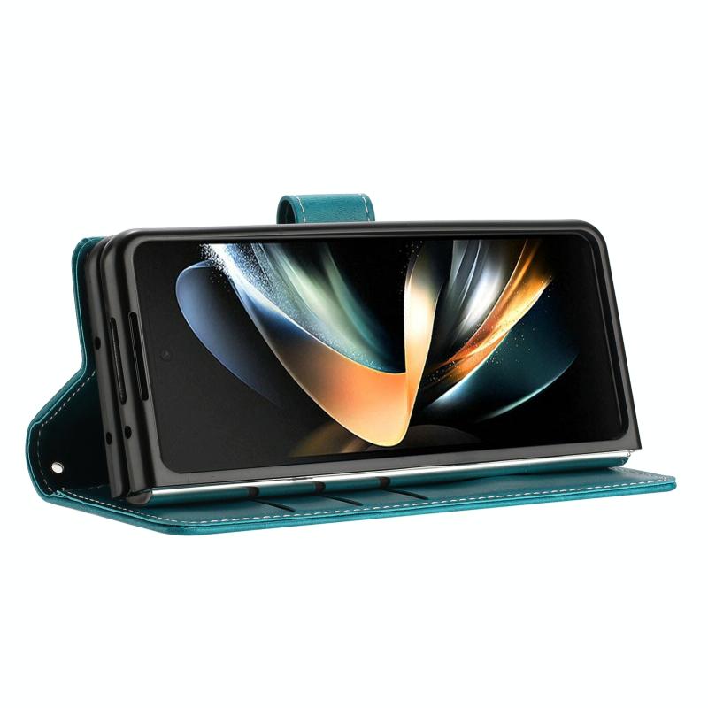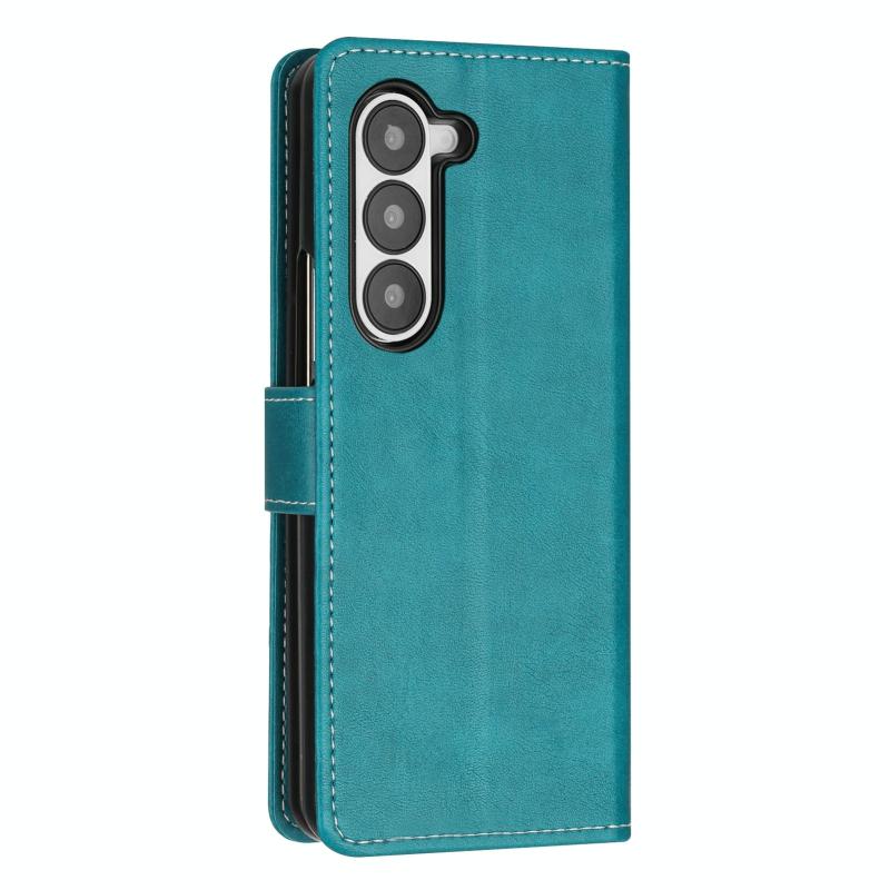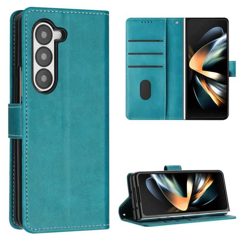 For Samsung Galaxy Z Fold6 Stitching Calf Texture Buckle Folding Leather Phone Case(Green)