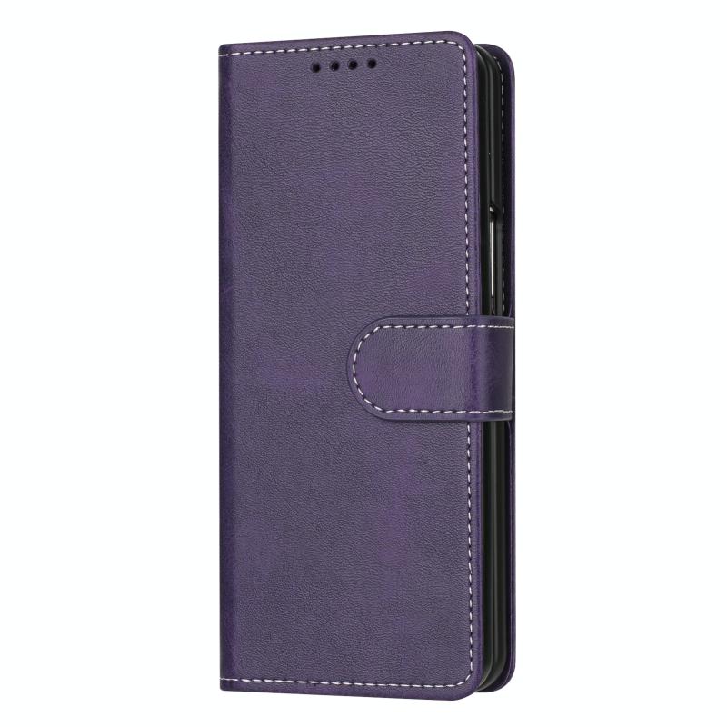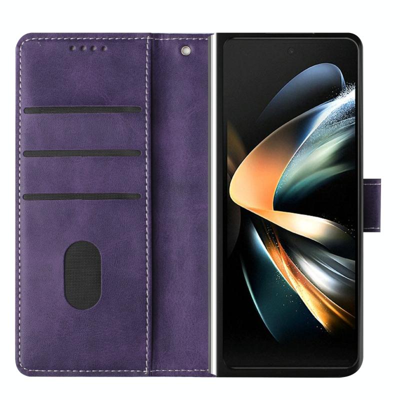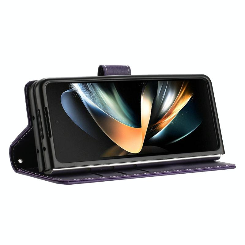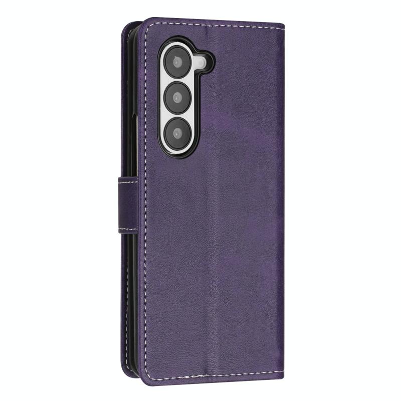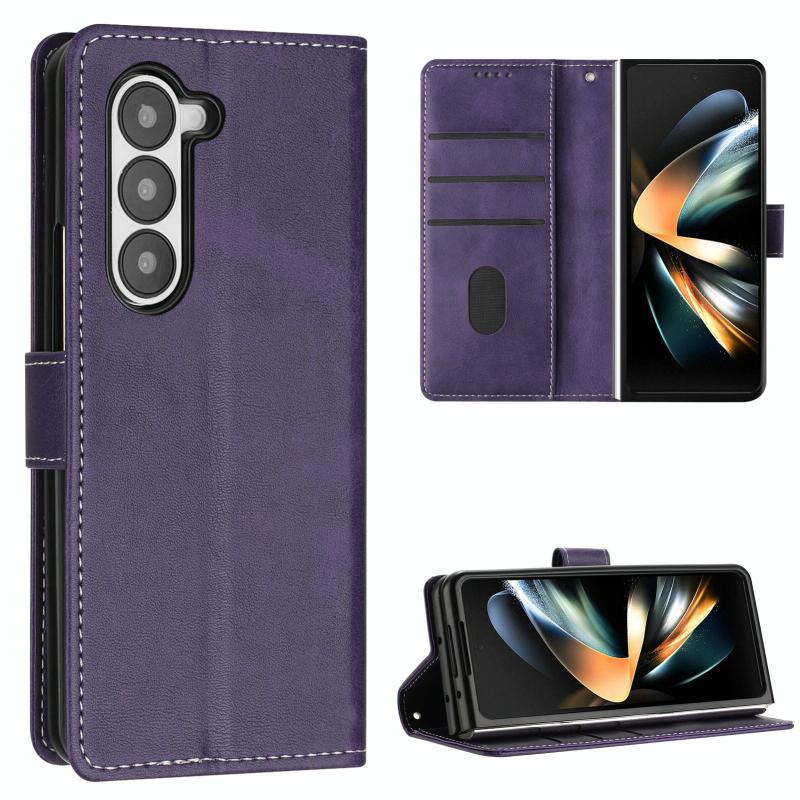 For Samsung Galaxy Z Fold6 Stitching Calf Texture Buckle Folding Leather Phone Case(Purple)