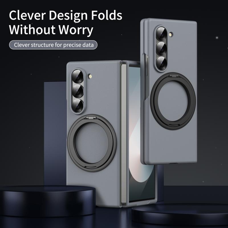 For Samsung Galaxy Z Fold6 Thunderbolt 360 Rotating Holder Shockproof Phone Case(Grey)