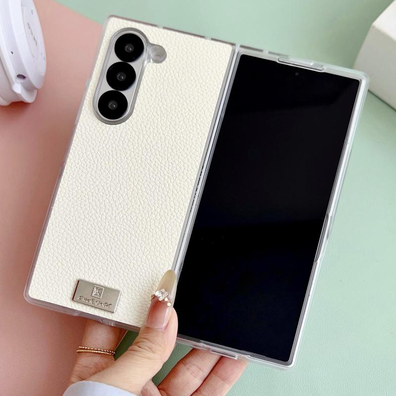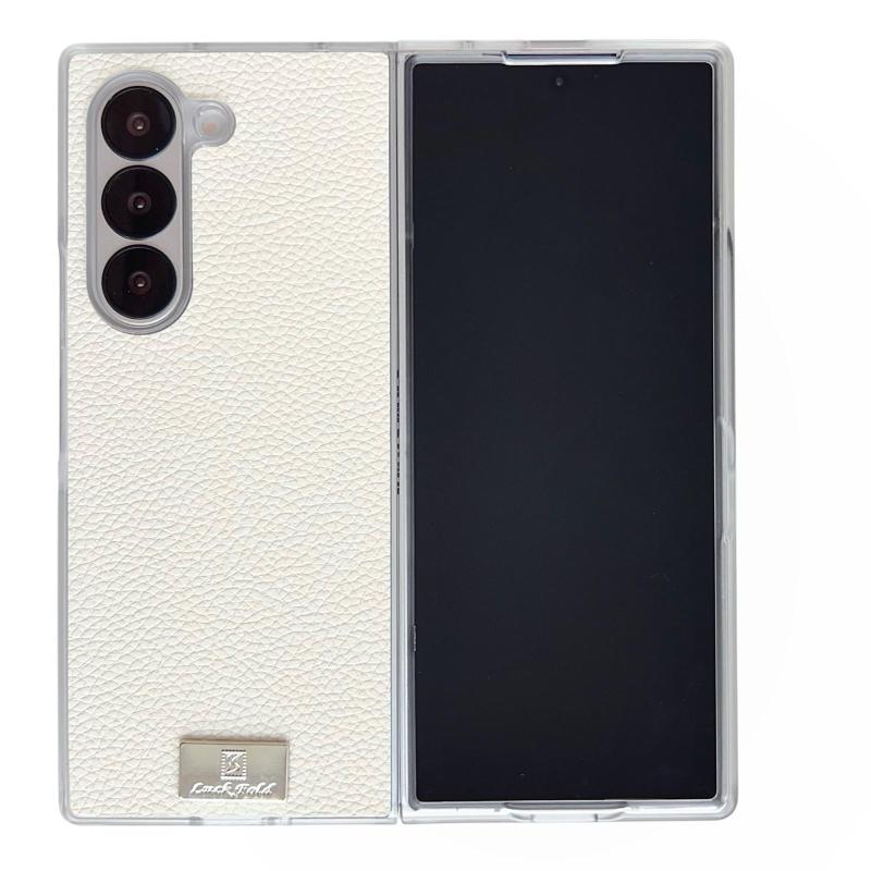 For Samsung Galaxy Z Fold6 Transparent Edge Litchi Texture Phone Case(White)