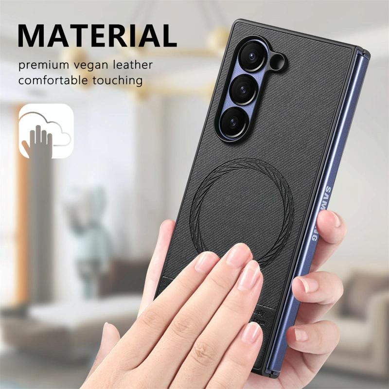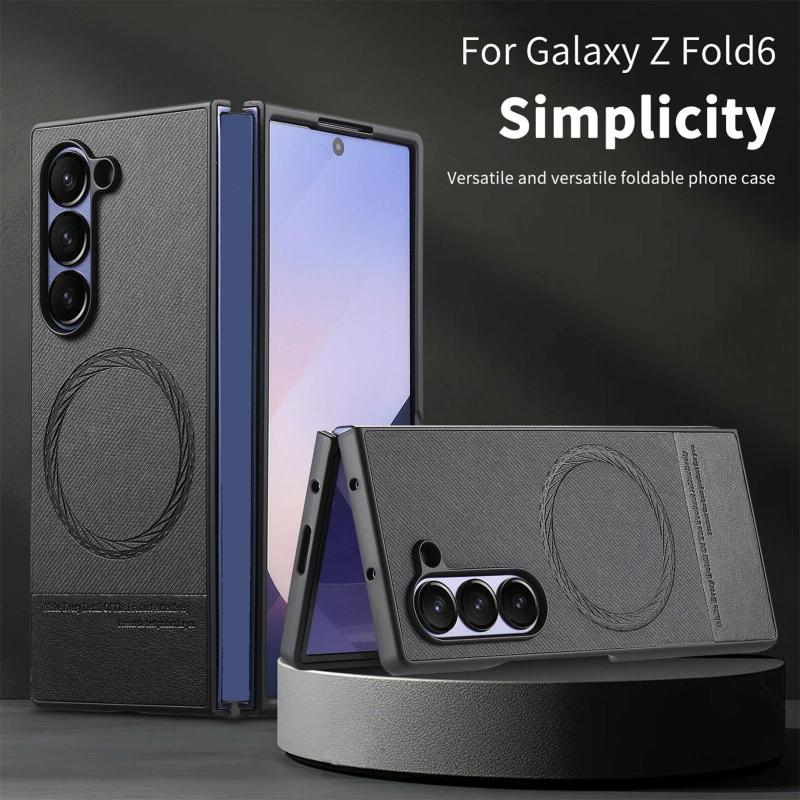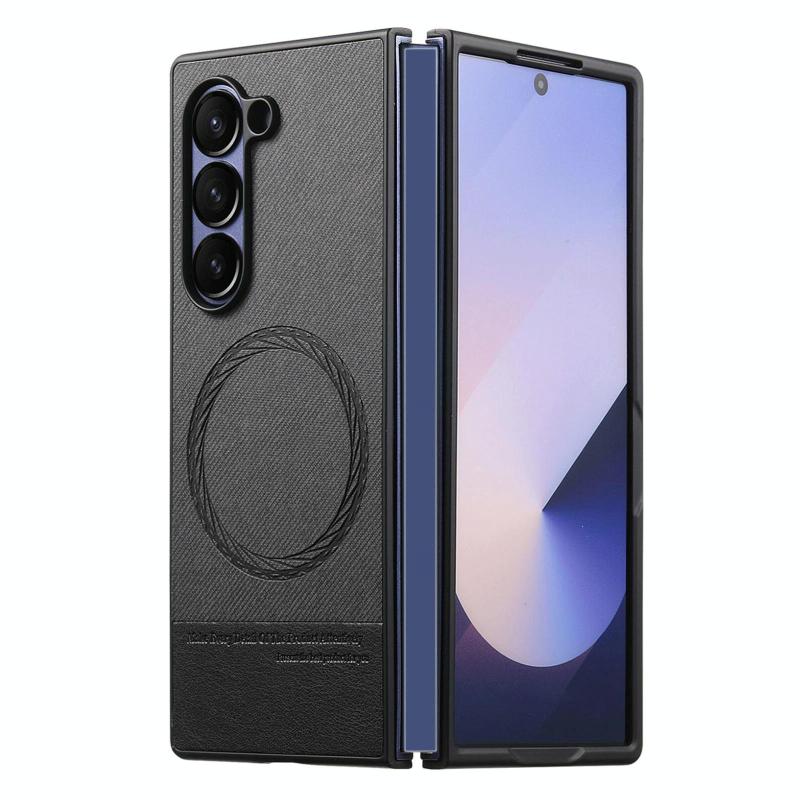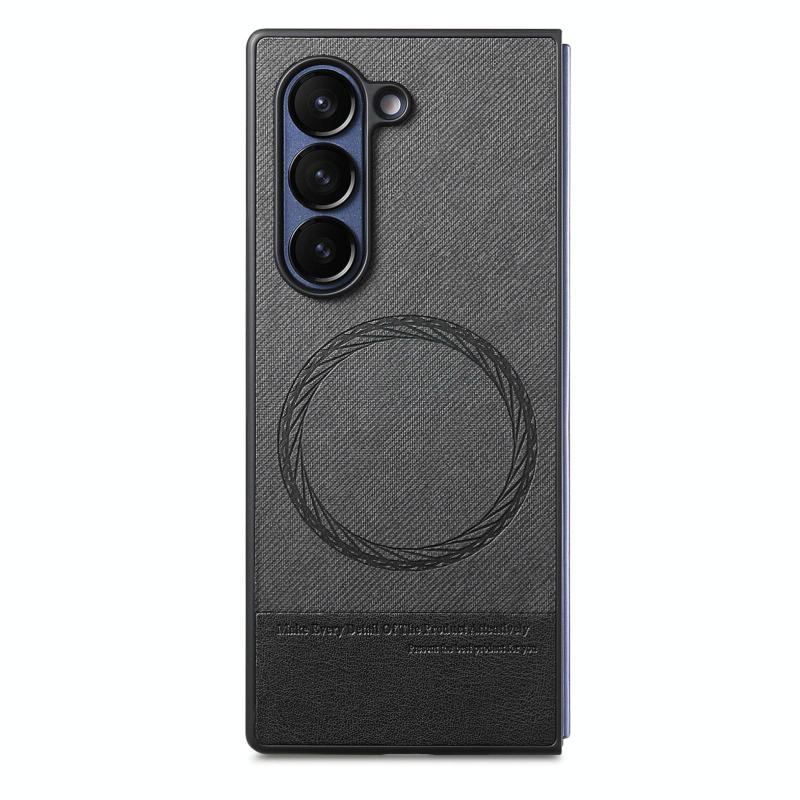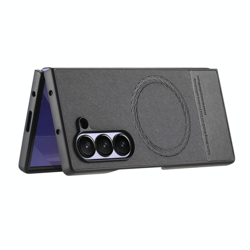 For Samsung Galaxy Z Fold6 Twill Fabric Leather Skin Magnetic Back Phone Case(Black)