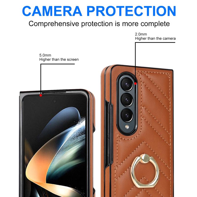 For Samsung Galaxy Z Fold6 V-shaped Folding Phone Case with Rotating Ring(Brown)
