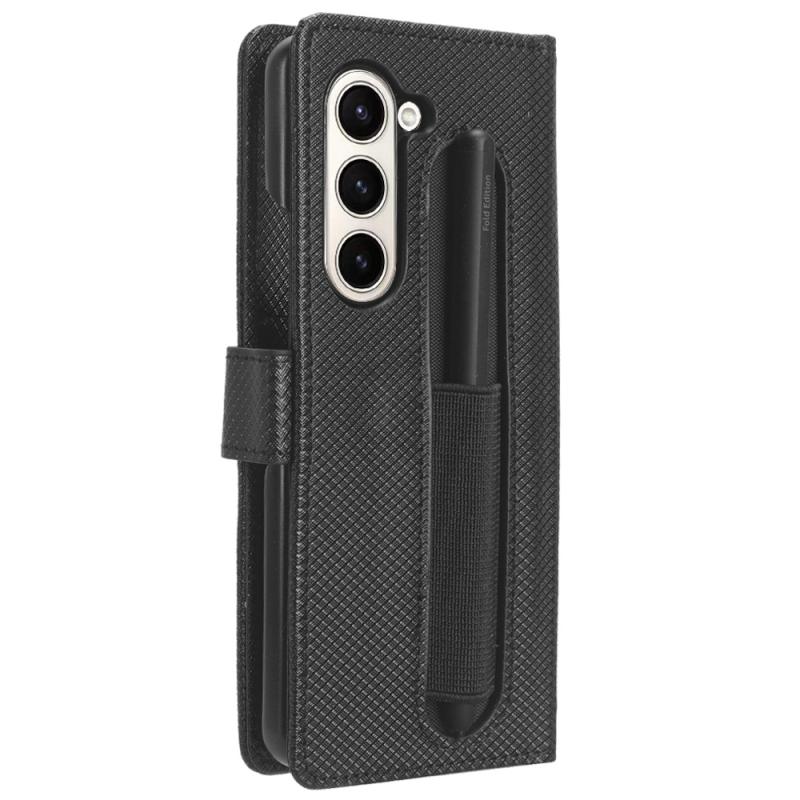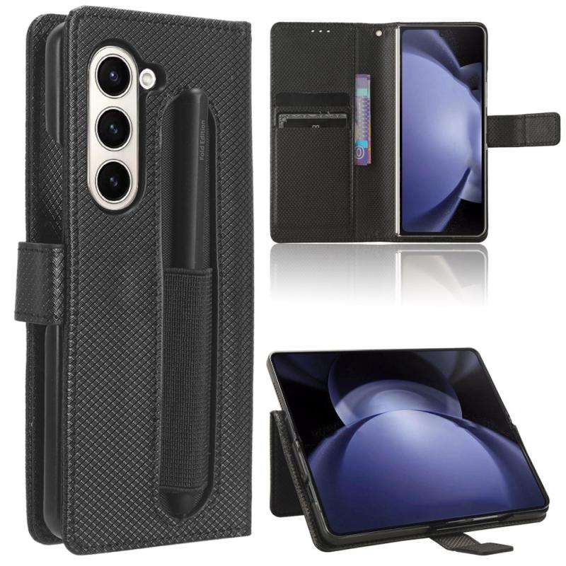 For Samsung Galaxy Z Fold6 with Pen Slot Diamond Texture Leather Phone Case(Black)