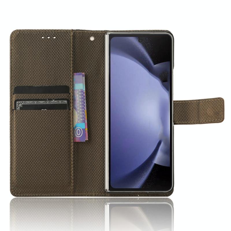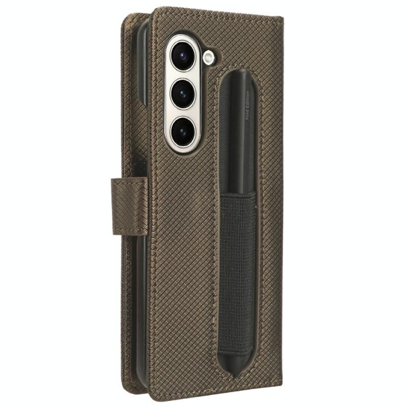For Samsung Galaxy Z Fold6 with Pen Slot Diamond Texture Leather Phone Case(Brown)