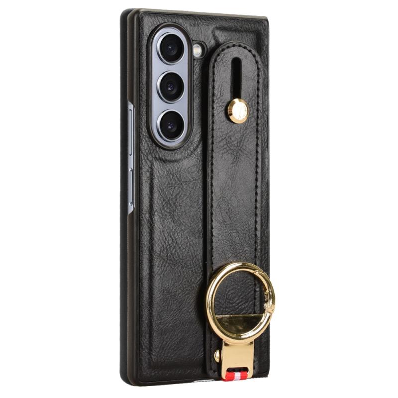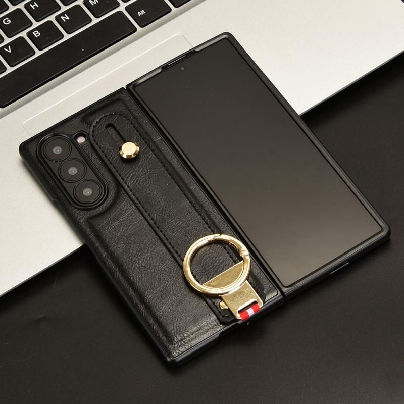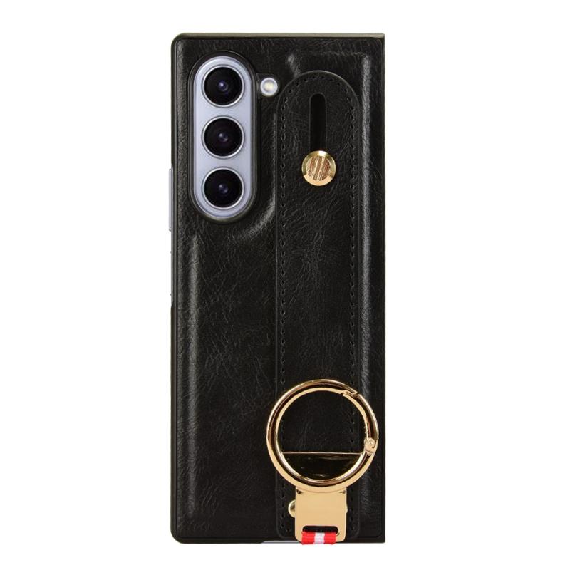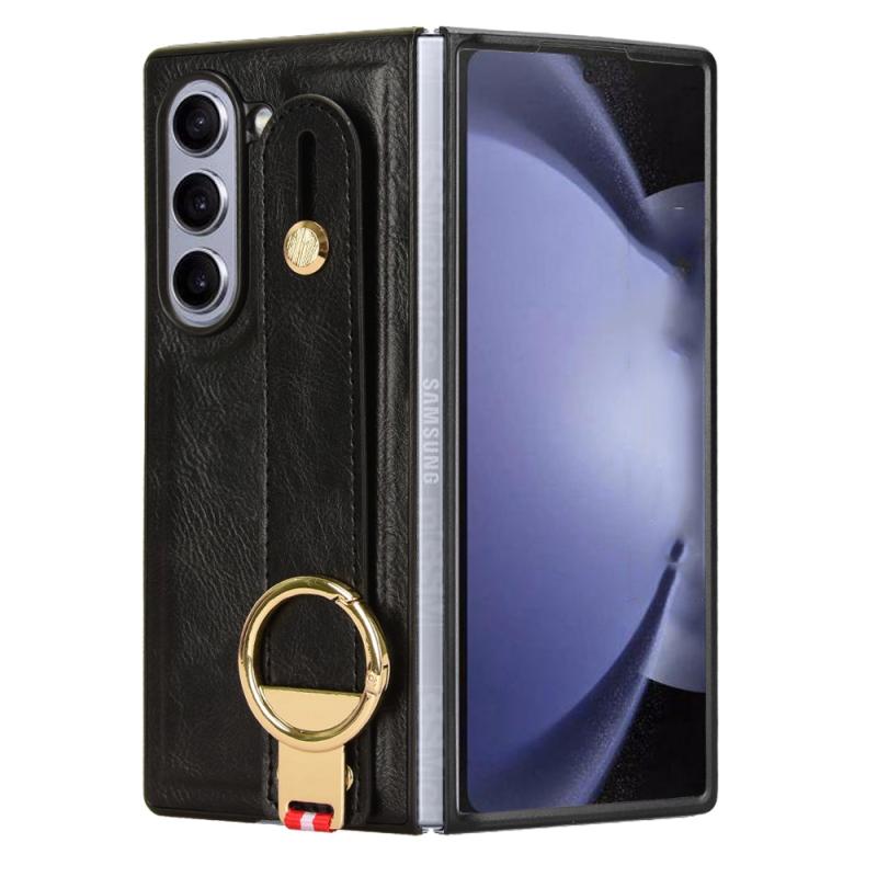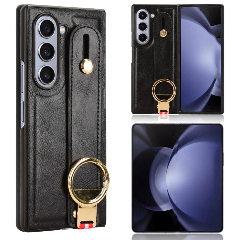 For Samsung Galaxy Z Fold6 Wristband Leather Back Phone Case(Black)