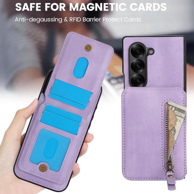 For Samsung Galaxy Z Fold6 Zipper Wallet Split MagSafe Leather Back Phone Case(Purple)