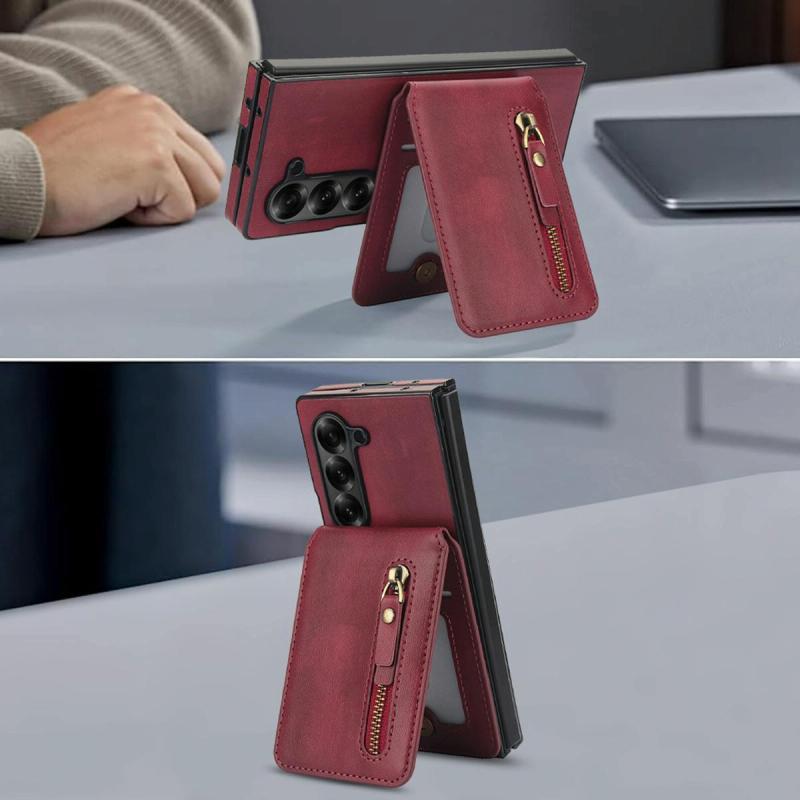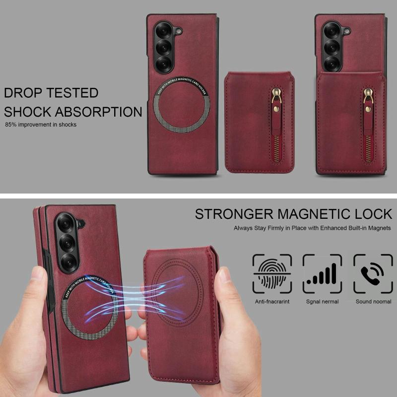 For Samsung Galaxy Z Fold6 Zipper Wallet Split MagSafe Leather Back Phone Case(Red)