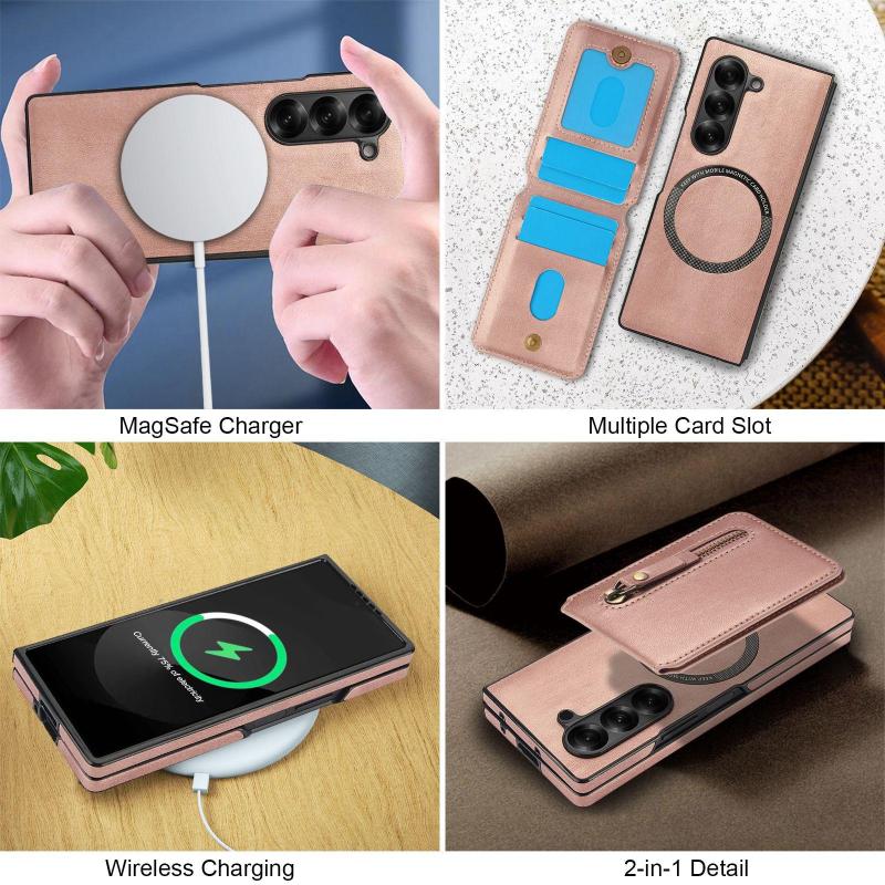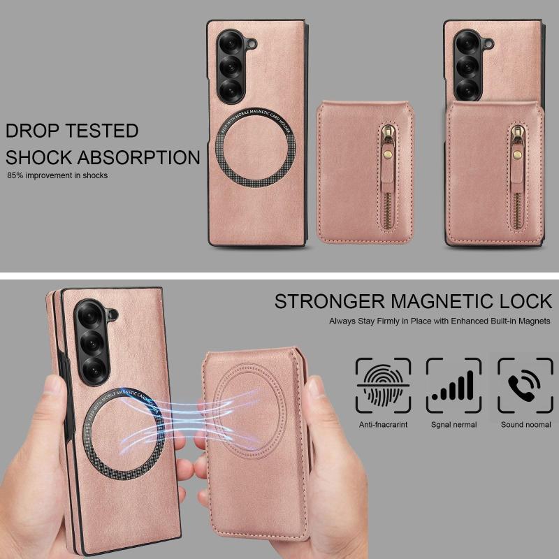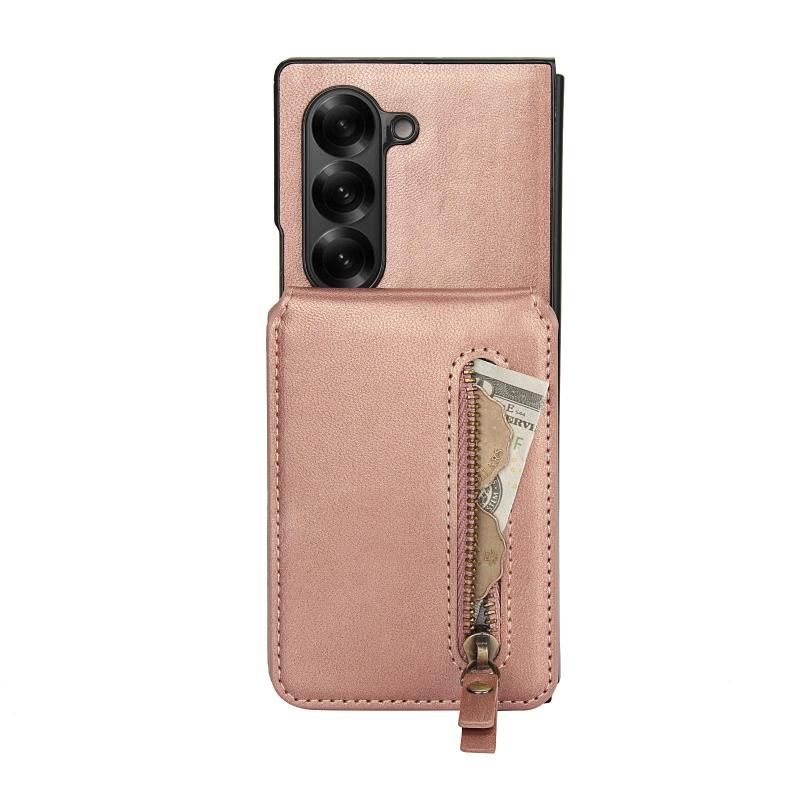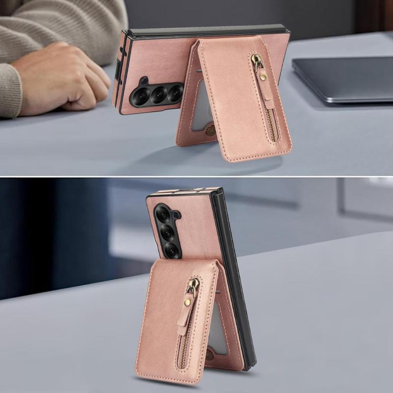 For Samsung Galaxy Z Fold6 Zipper Wallet Split MagSafe Leather Back Phone Case(Rose Gold)