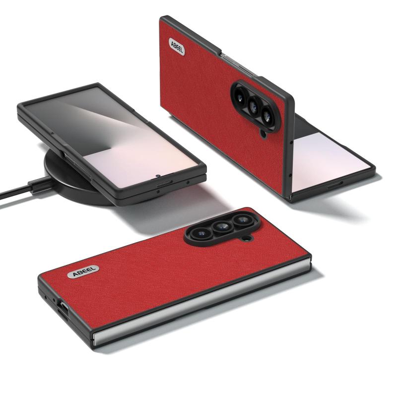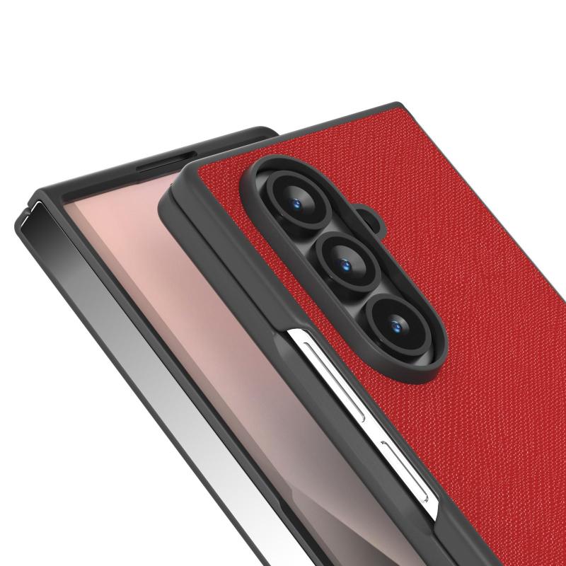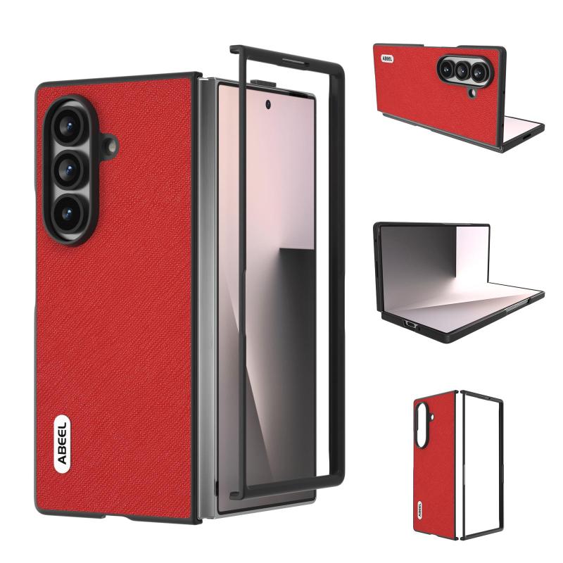 For Samsung Galaxy Z Fold7 5G ABEEL Cross Texture Genuine Leather Phone Case(Red)