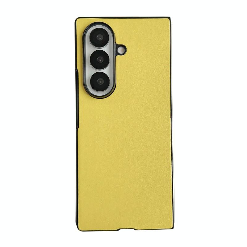 For Samsung Galaxy Z Fold7 5G Morandi Solid Color Leather Texture Phone Case(Yellow)