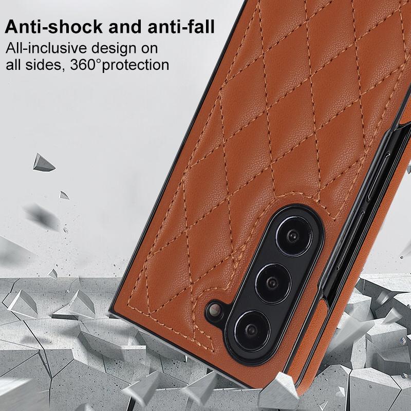 For Samsung Galaxy Z Fold7 5G Rhombic Fold Leather Phone Case(Brown)