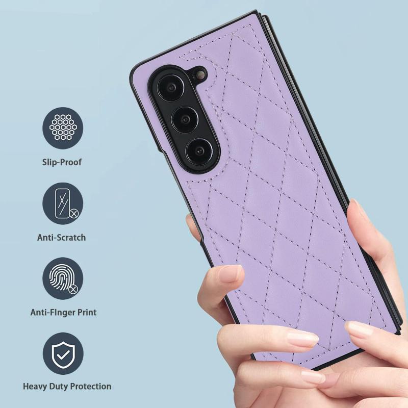 For Samsung Galaxy Z Fold7 5G Rhombic Fold Leather Phone Case(Purple)