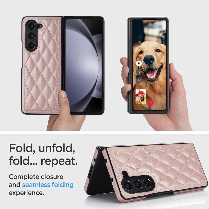 For Samsung Galaxy Z Fold7 5G Rhombic Fold Leather Phone Case(Rose Gold)