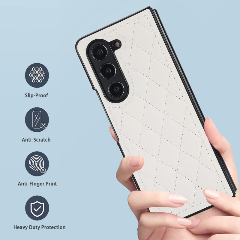 For Samsung Galaxy Z Fold7 5G Rhombic Fold Leather Phone Case(White)