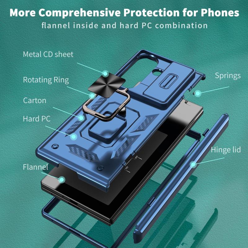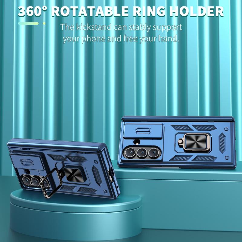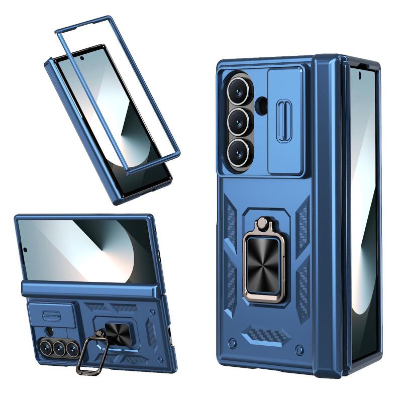 For Samsung Galaxy Z Fold7 5G Sliding Window Hinge Phone Case with Ring Stand(Blue)