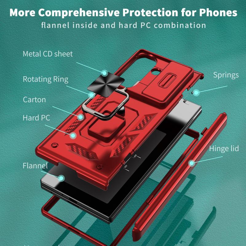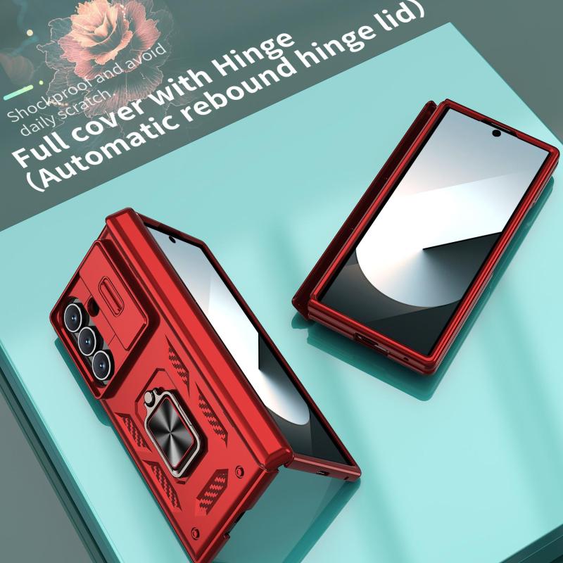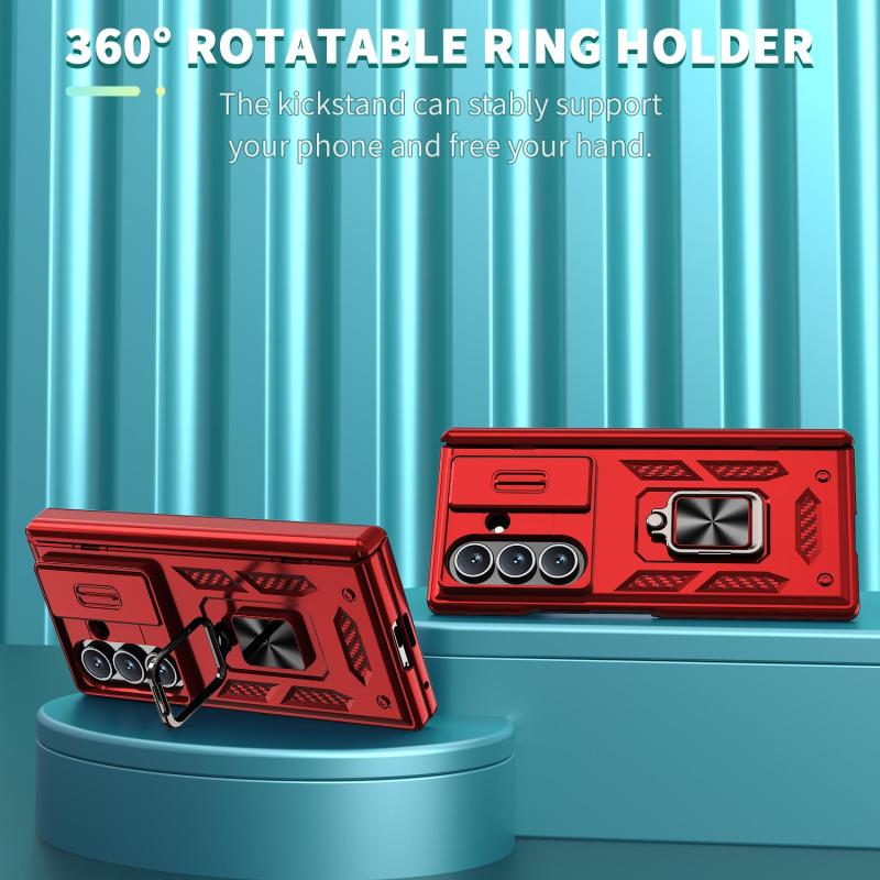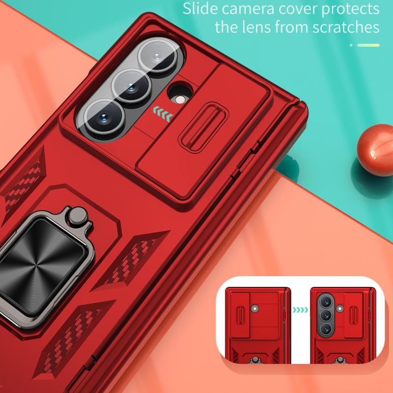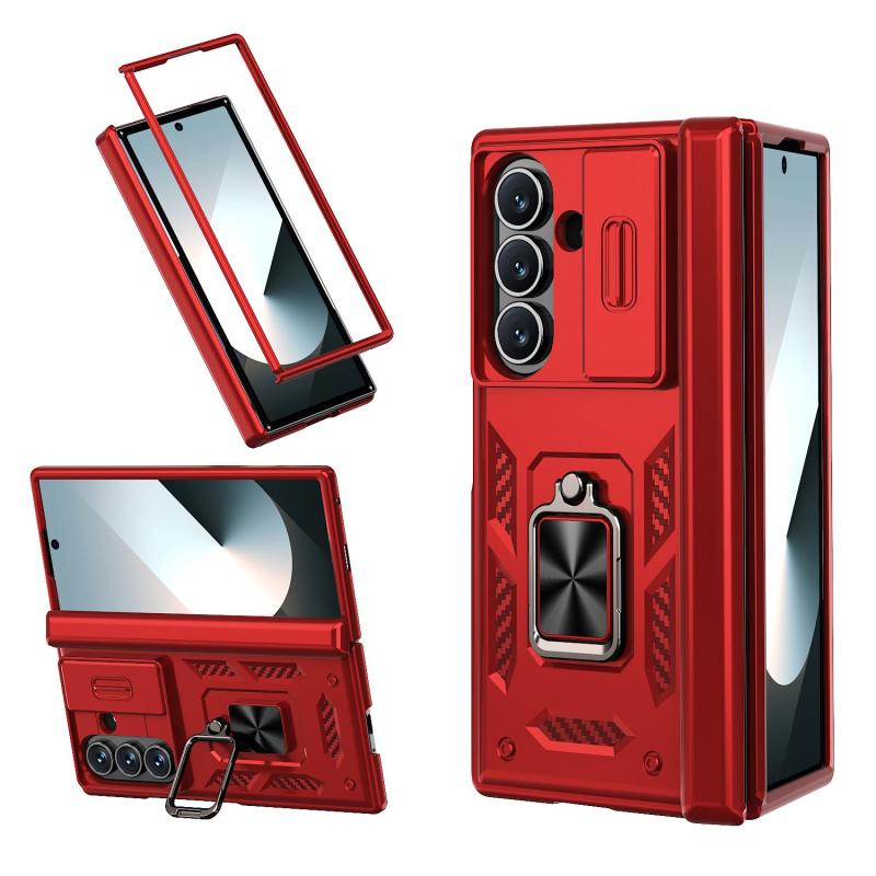 For Samsung Galaxy Z Fold7 5G Sliding Window Hinge Phone Case with Ring Stand(Red)
