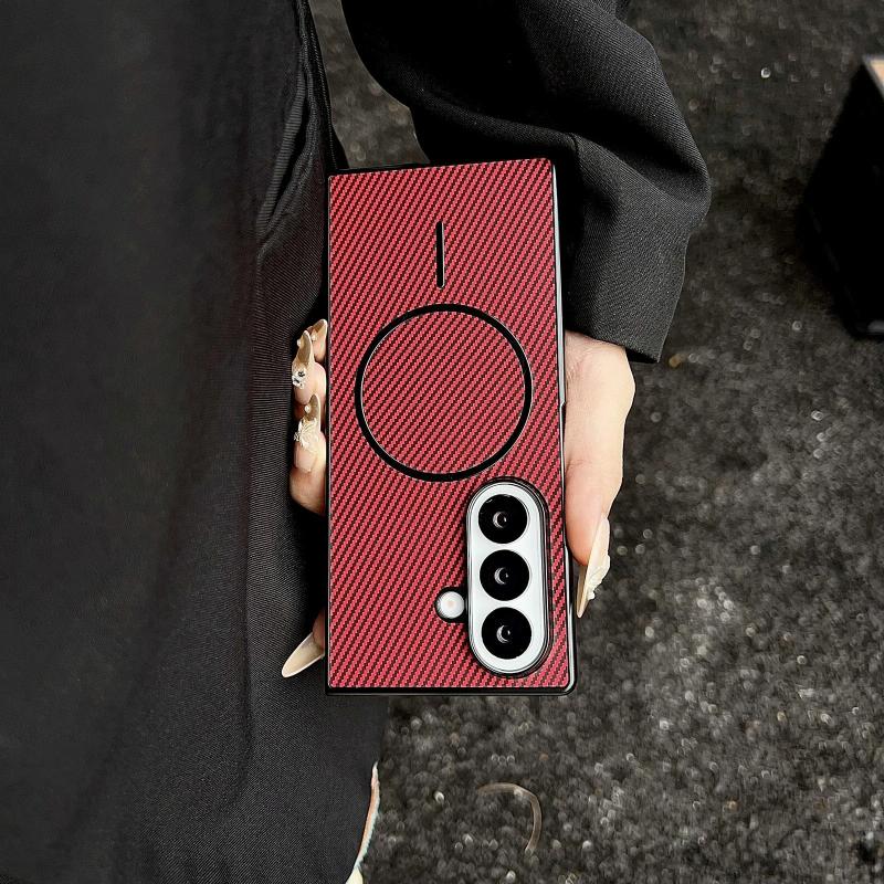 For Samsung Galaxy Z Fold7 Carbon Fiber Texture MagSafe Phone Case(Red)