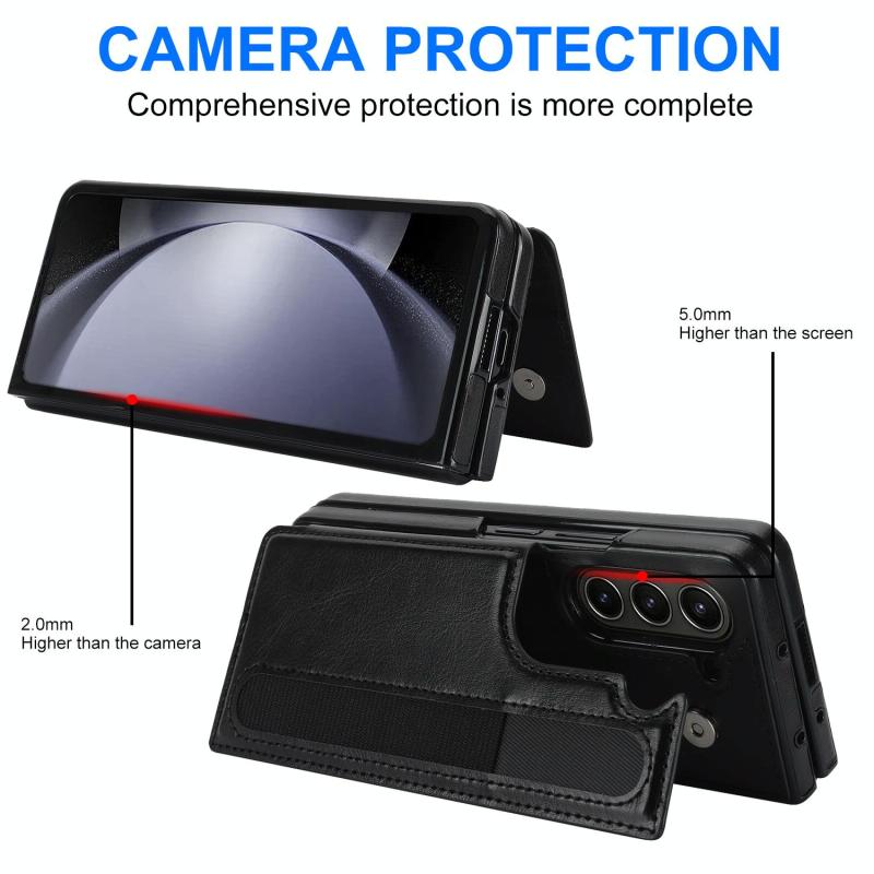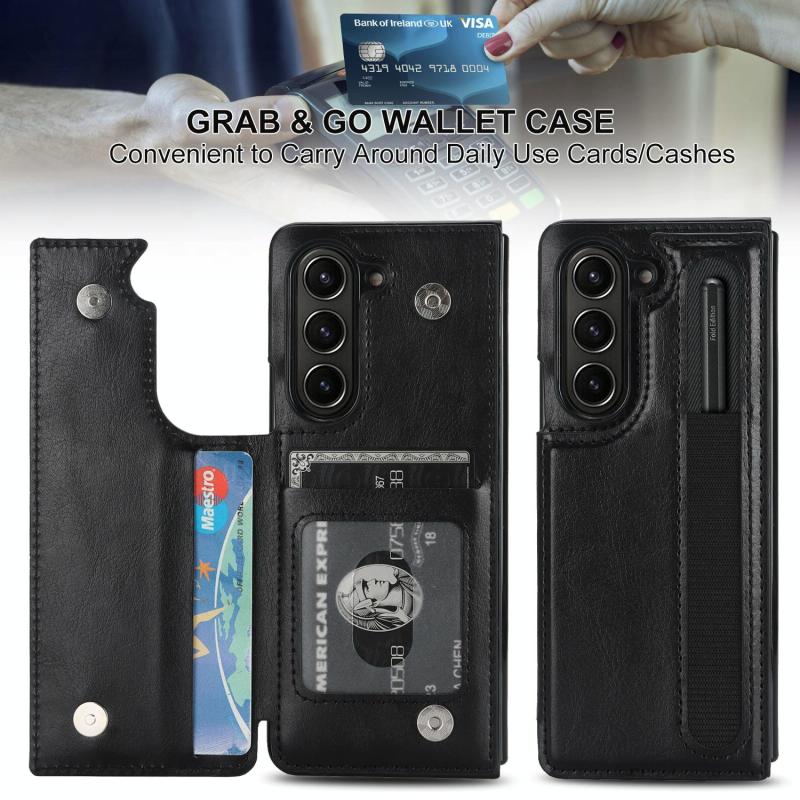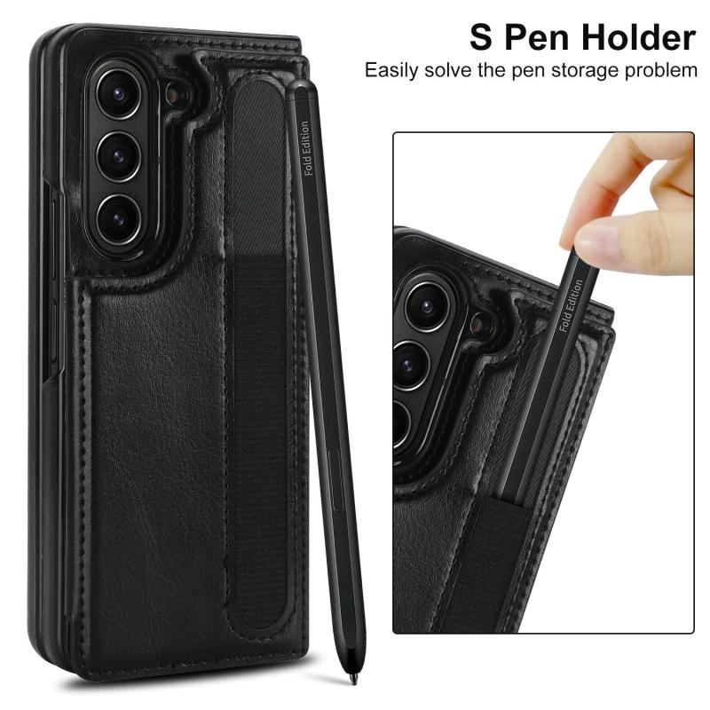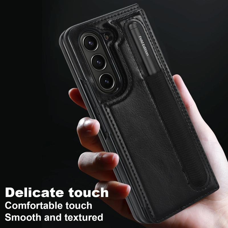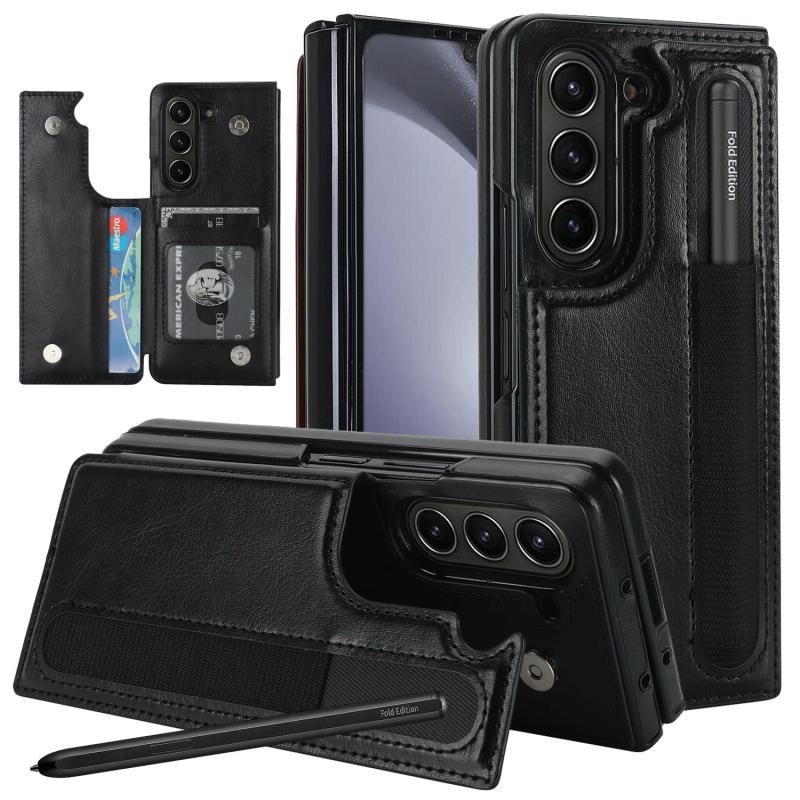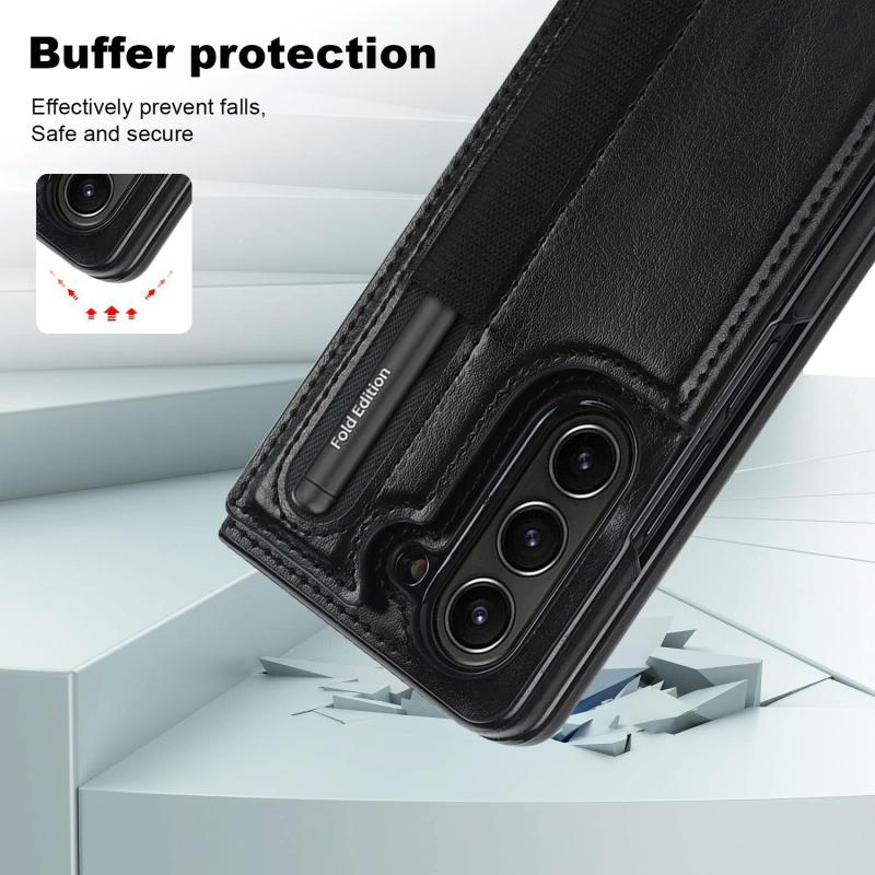 For Samsung Galaxy Z Fold7 Full Coverage Fold Double Buckle PU Phone Case with Pen Slots(Black)