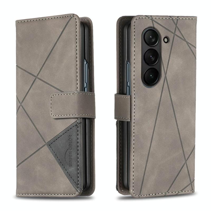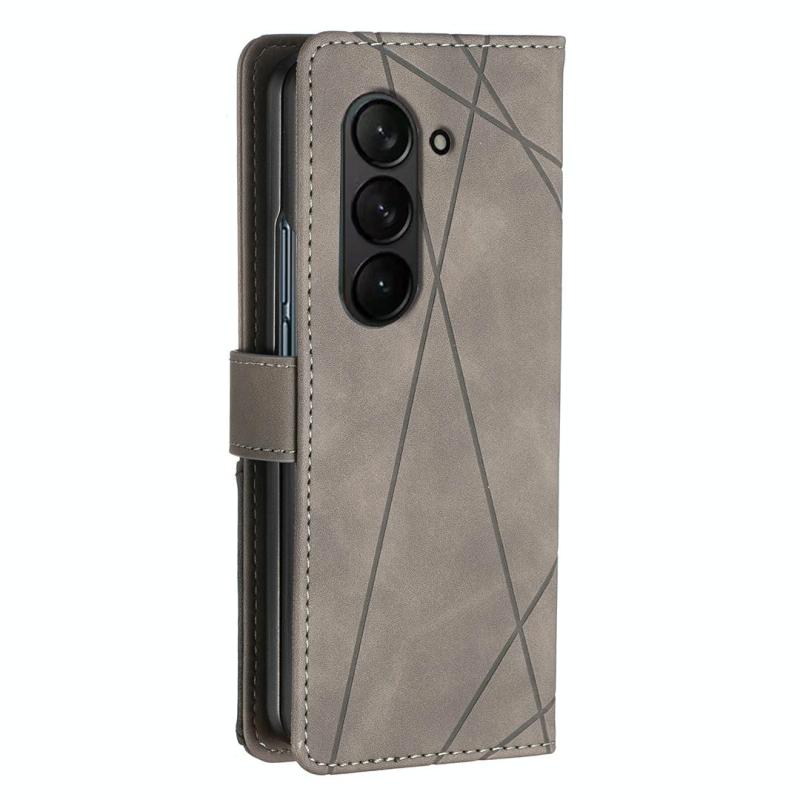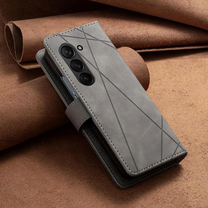 For Samsung Galaxy Z Fold7 Magnetic Buckle Rhombus Texture Leather Phone Case(Grey)