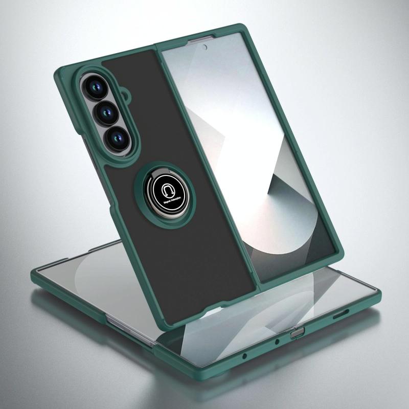For Samsung Galaxy Z Fold7 Q Shadow 1 Series TPU + PC Phone Case with Ring(Dark Green)