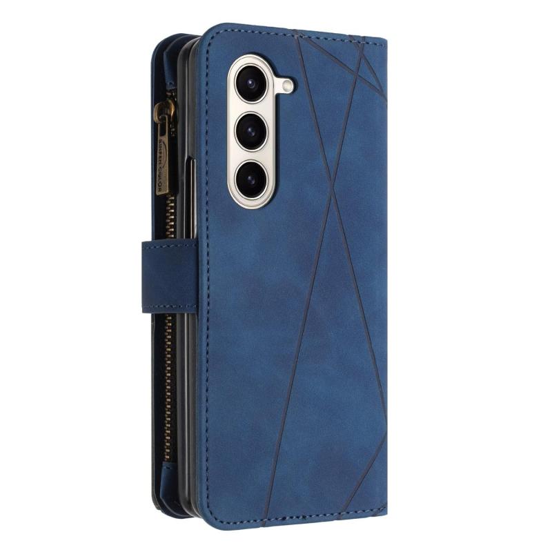 For Samsung Galaxy Z Fold7 Rhombus Texture Zipper Wallet Leather Phone Case(Blue)
