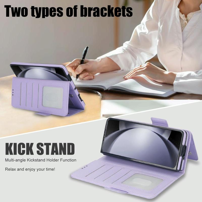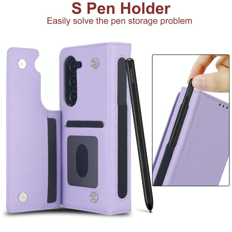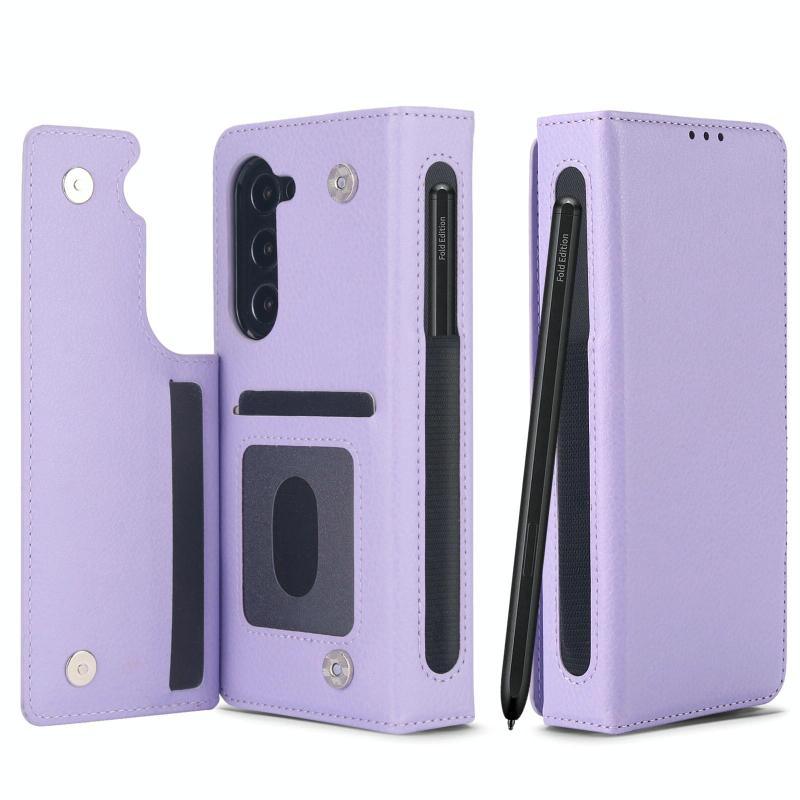 For Samsung Galaxy Z Fold7 Solid Color Multifunctional Folding Leather Phone Case with Pen Slot(Purple)