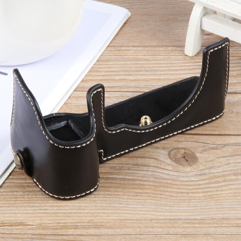 For Sony ILCE-7CM2 / Alpha 7C II Glossy PU Leather Camera Half Case Base(Black)