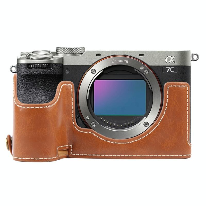 For Sony ILCE-7CM2 / Alpha 7C II Glossy PU Leather Camera Half Case Base(Brown)