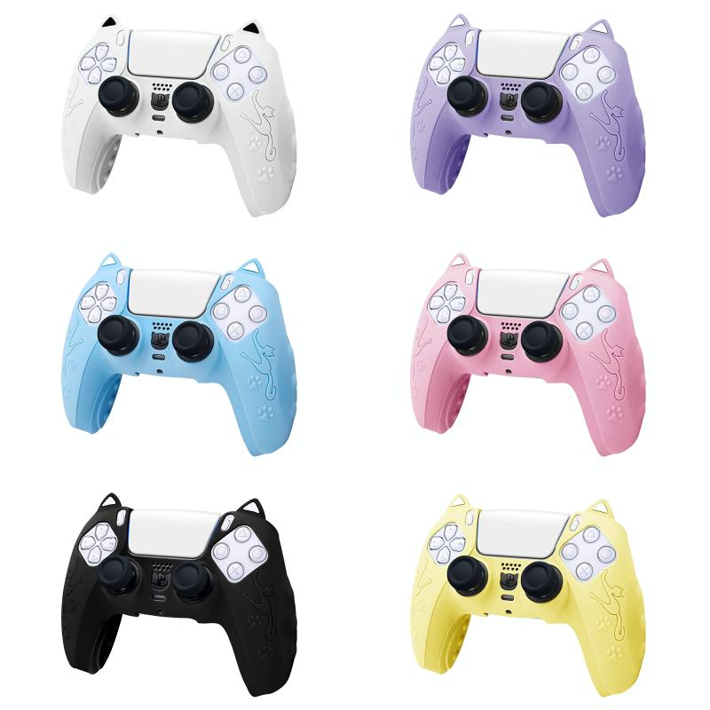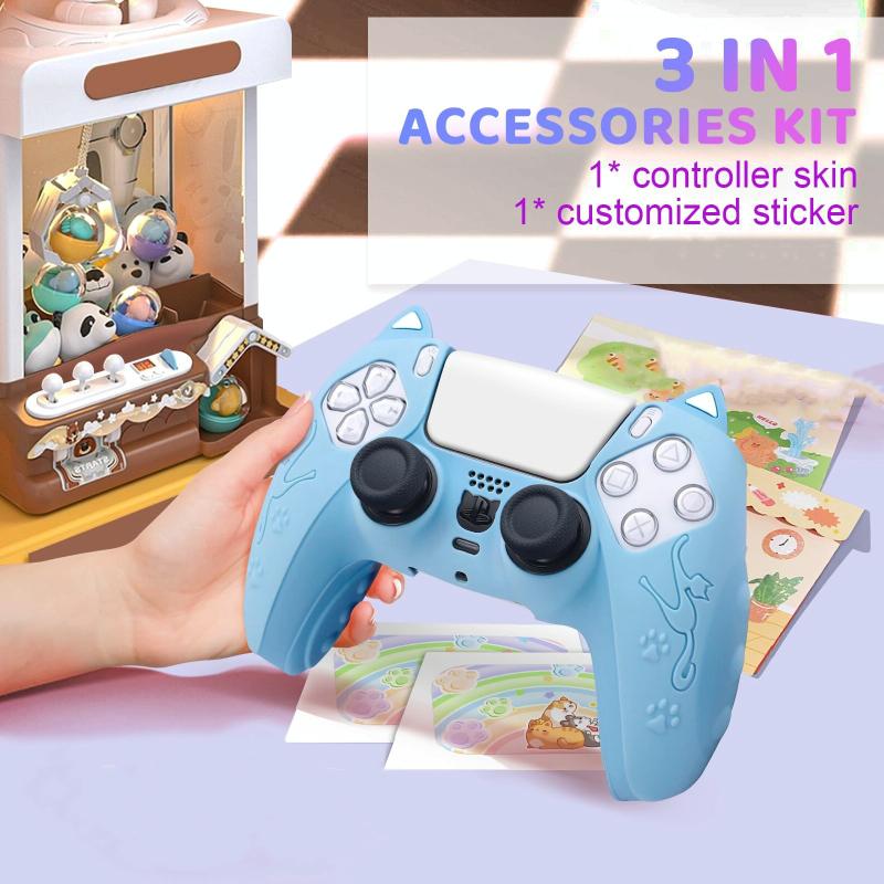 For Sony PS5 Cat Ear Shape Gamepad Silicone Protective Case(Blue)