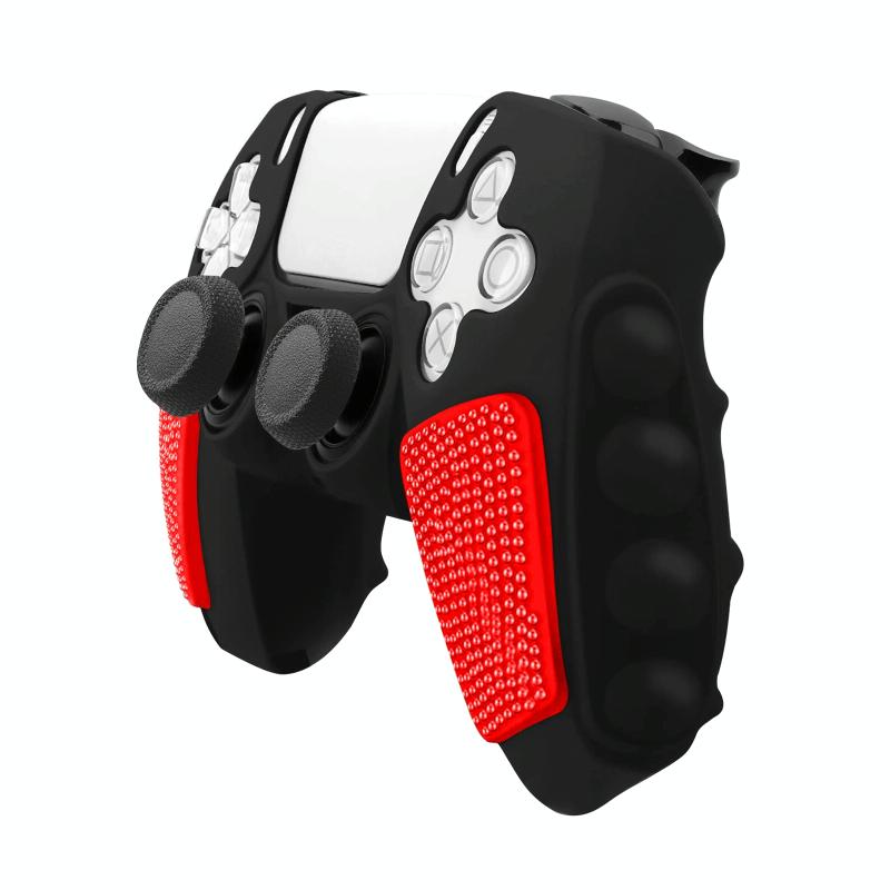 For Sony PS5 Splicing Color Silicone Gamepad Protective Case without Rocker Caps(Black Red)