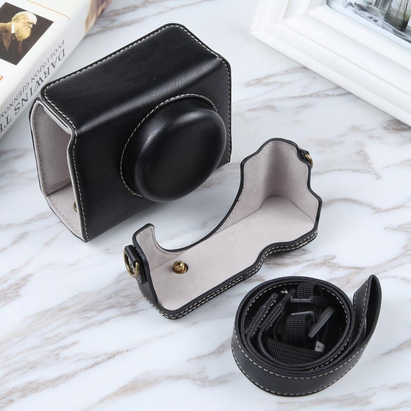 For Sony ZV-1F Vlog Camera Full Body Magnetic Leather Camera Case Bag with Strap (Black)
