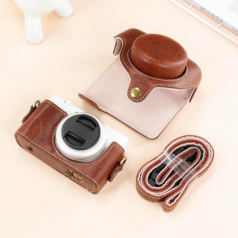For Sony ZV-1F / ZV1M2 Full Body Camera PU Leather Case Bag with Strap (Coffee)