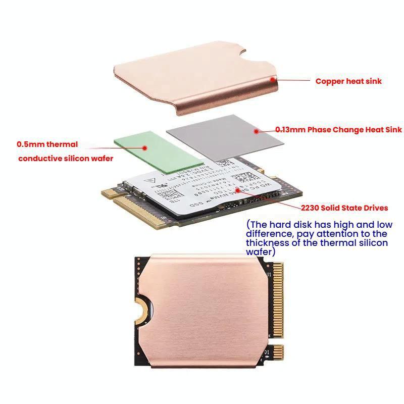 2. This SSD radiator is made of pure copper material. This material is not only very durable, but also has high thermal conductivity. At the same time, it exchanges heat by contacting with the air, dissipating heat faster.