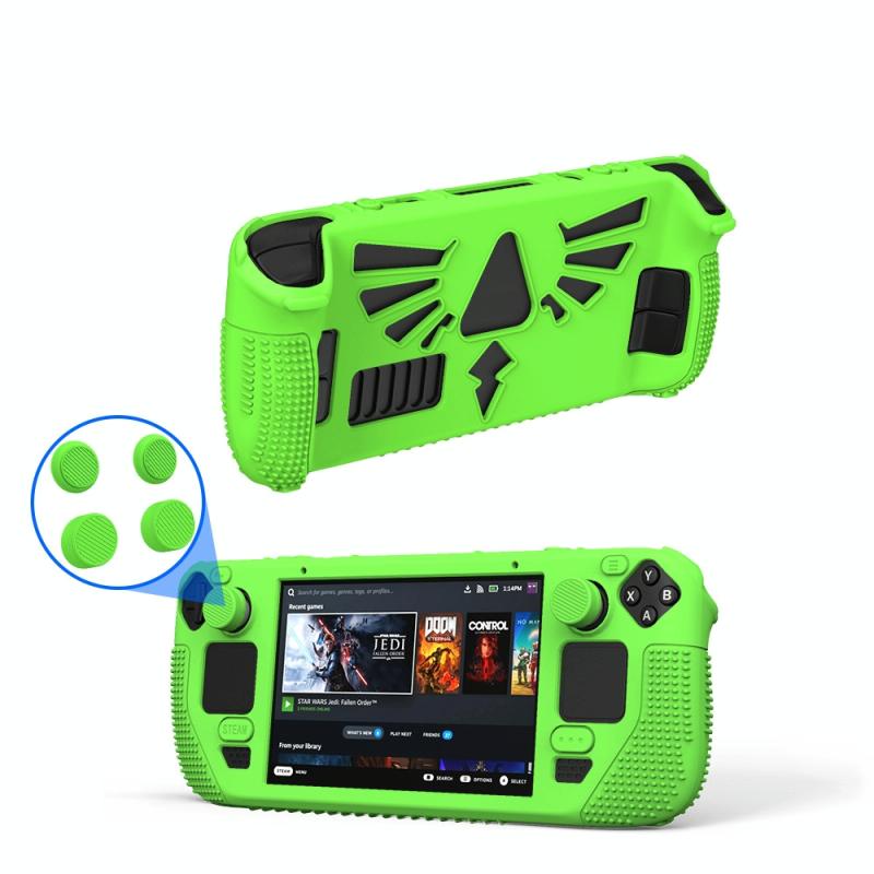 For Steam Deck V V4-1 Pocket Consoles Silicone Non-slip Protective Case with Holder Function(Green)