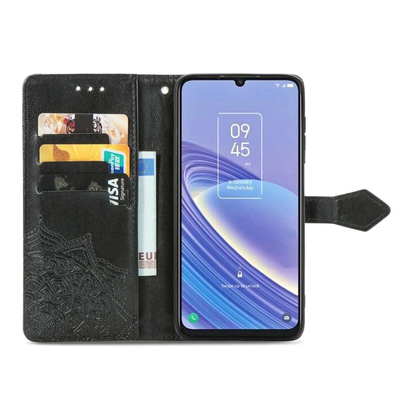 For TCL 40 SE Mandala Flower Embossed Leather Phone Case(Black)