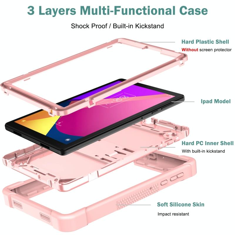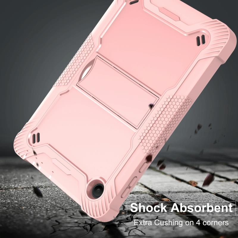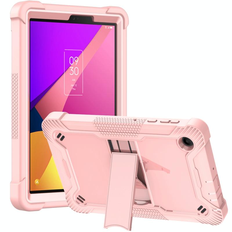 For TCL Tab 8 LE Shockproof Silicone Hybrid PC Tablet Case with Holder(Rose Gold)