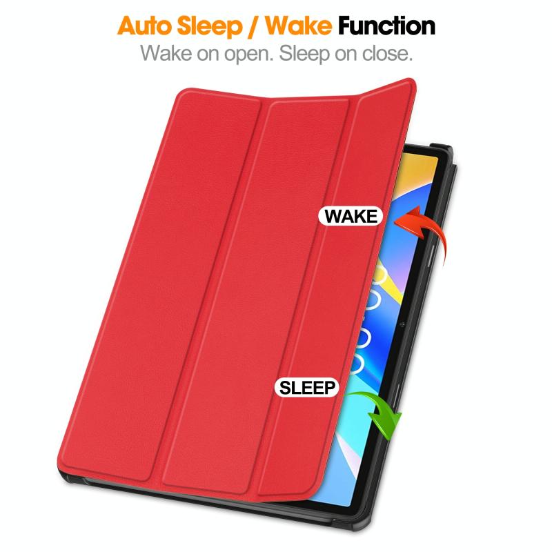 For Teclast M40 Plus Custer Pure Color 3-Fold Holder Leather Tablet Case(Red)