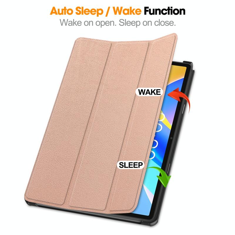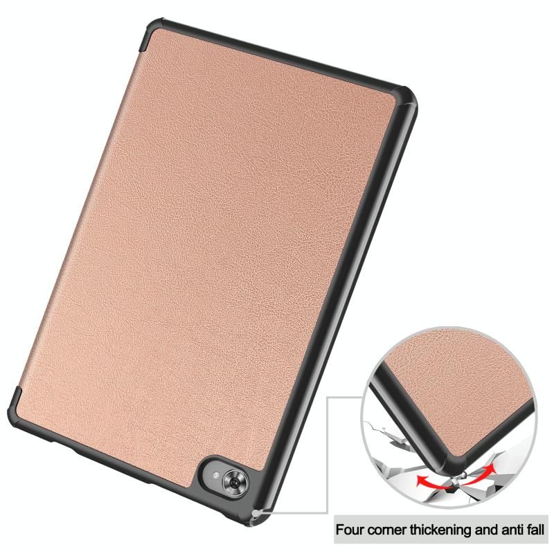 For Teclast M40 Plus Custer Pure Color 3-Fold Holder Leather Tablet Case(Rose Gold)