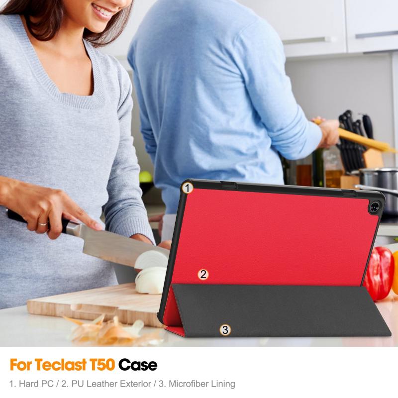 For Teclast T50 Custer Pure Color 3-Fold Holder Smart Leather Tablet Case(Red)