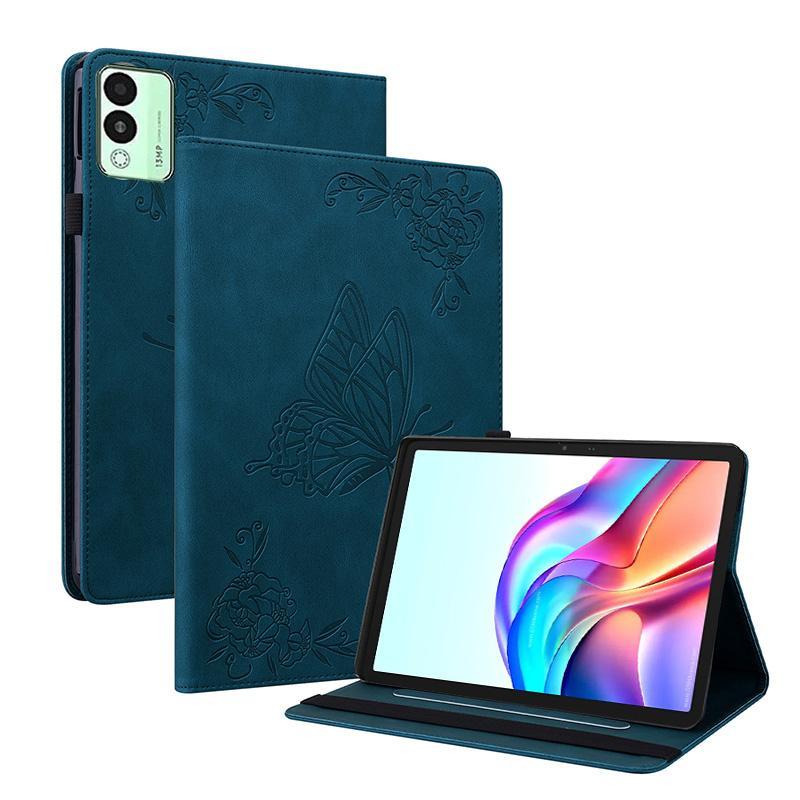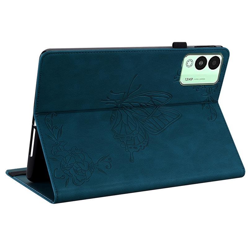 For Tecno Megapad 11 Butterfly Flower Embossed Leather Tablet Case(Blue)