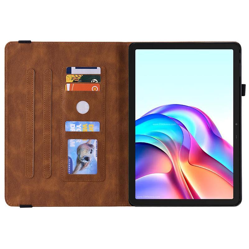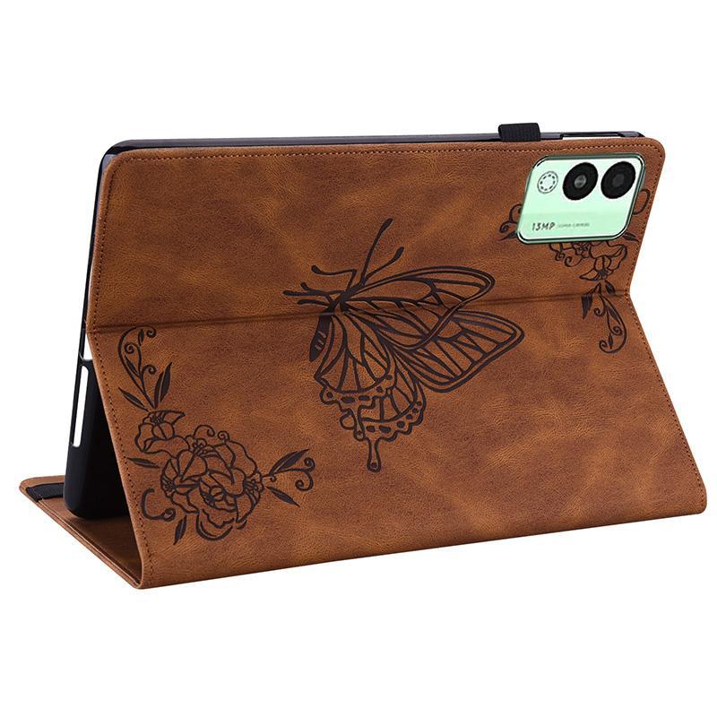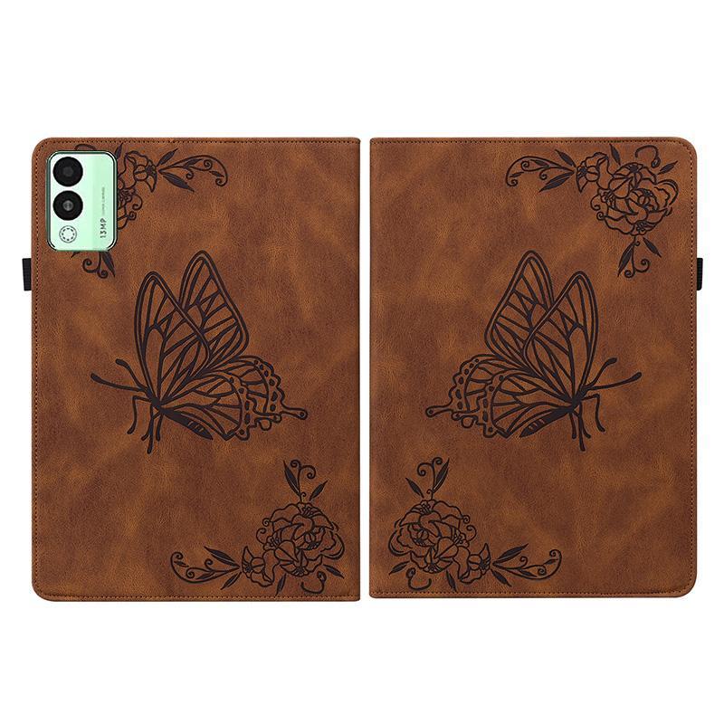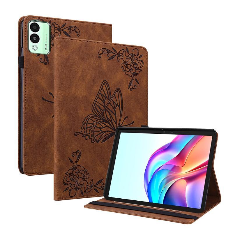 For Tecno Megapad 11 Butterfly Flower Embossed Leather Tablet Case(Brown)